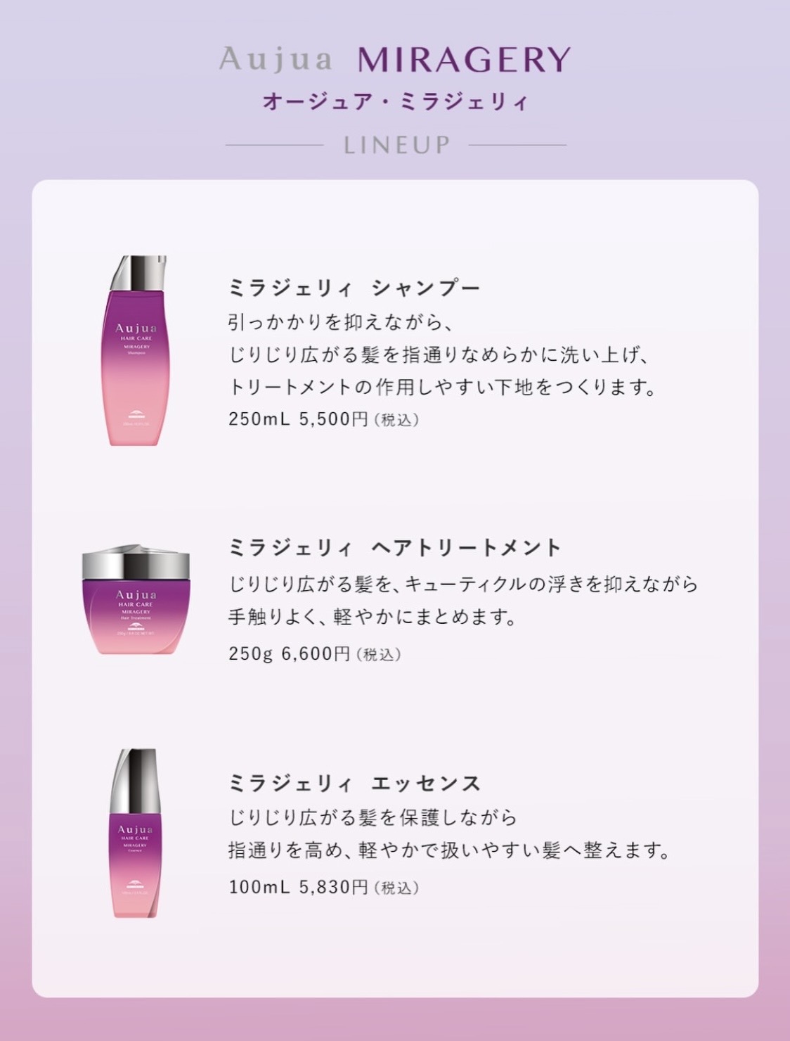 Aujua MIRAGERY/ミラジェリィ Uncategorized LINE note Post Share LINE RSS note 投稿者: lecoerUncategorized あなたの髪に合う、3つのヘアーケアアイテム